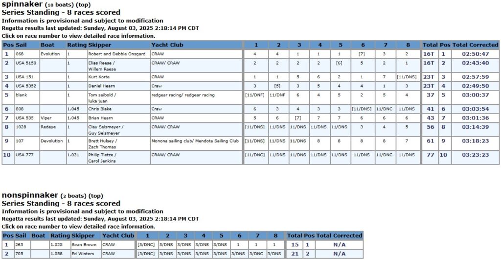 Full results can be accessed on Regatta Network here; click on the race number at the top of each column to view race-specific information